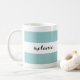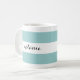 This mug can be personalised with a name on both sides for lefties or righties and features a modern graphic stripe pattern in aqua and white.
