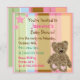 Striped baby girl teddy bear shower invitations