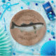 •Striped bass graphic. Silvery, shiny fish with striped speckles on back and tail.