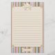 Very trendy Beagle stationery is brown, pink, and blue. A hound silhouette is at the top, and a dog bone at the bottom. The four corners of the lined section are in place with paw prints. Cute dog lover stationery for all your letters!