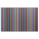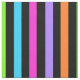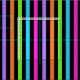 A stripped pattern of black and various colours, including aqua, green, orange, purple and pink.
