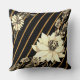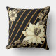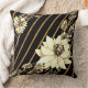 Striped Black Gold with White Rose Cushion