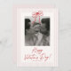 A sweet and charming Valentine’s Day photo card featuring soft blush stripes, a hand-drawn bow, and your favorite photo centered for a heartfelt touch. Perfect for sending love to family and friends, sharing adorable kid photos, or creating a warm, memorable Valentine greeting.