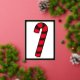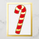 Red and gold foil striped candy cane. some parts of the postcard are printed with real foil and some are printed with standard ink (the red colour).