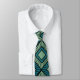This tie has an art deco design of diamond shapes with diagonal lines and coloured diamonds in two shades of teal.