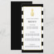 This stylish baby shower menu has a trendy black and white striped background, with a faux gold frame border and pineapple for a modern, tropical look!