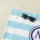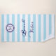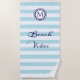 Add a touch of fresh coastal charm to your beach or pool style with this personalised striped towel. Featuring crisp light blue and white stripes, this towel includes “Beach Vibes” wording in nautical navy script and a custom monogram initial within a porthole-style 'frame'. With its timeless design and personal touch, it’s a thoughtful gift for anyone who loves a relaxed, ocean-inspired look.