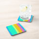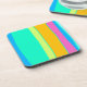 Bold lined turquoise, orange, yellow, blue and green beverage coaster.