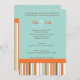 Striped orange and blue babyshower invitation. Design features modern stripes in striking oranges, blues, browns and white.
