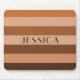 Mouse pad with an earthy coloured brown and beige monochrome striped pattern and a personalised name. Type your name in the template field to personalise it. Matching computing accessories available at the Dots & Stripes Pattern Store.