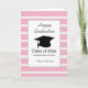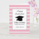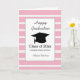 This is a striped pink graduation card, which can be personalised on the front with the graduating year, school name and graduate's name. It features a grad cap and a stripe design in the background. The inside of this graduation card reads a heartfelt congratulations, which you can easily personalise if you wanted. The back features the striped design with a place for you to personalise with the graduating year. This would make a great graduate keepsake.