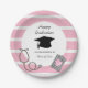 Striped Pink Nursing School Graduation Paper Plat Plate