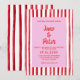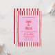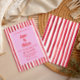 This wedding invitation brings playful energy in a classic, elegant format. Hand-painted red stripes frame a soft blush center, creating a vibrant yet romantic backdrop that feels both modern and welcoming. Expressive brush lettering adds an artistic, personal touch, while the vertical layout gives the design room to breathe and shine. Perfect for couples who love bold color with a refined twist, this invitation sets the stage for a celebration filled with joy, style, and heartfelt moments.