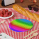 Striped rainbow paper plate