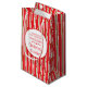 Cute red and green striped baking gift bag, perfect for Christmas cookie exchange parties or for selling your homemade products at farmer's market's and craft fairs. Use these bag to present your Christmas gifts or for children's favours to family and friends. Currently reads Made with love from the kitchen of Isabella Baker Christmas Cookies. Fully customisable to personalise with your own name, and product details. Uniquely designed by Sarah Trett.