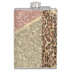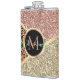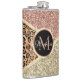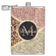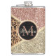 Striped Rose Gold Glitter Leopard Monogram Hip Flask
