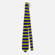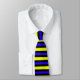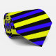 This tie has a cool blue and yellow striped design on it.
