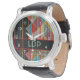A watch with my original design of stripes over multicolored triangles and sample initials for you to customise with your own.