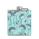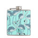 Striped Turquoise Flamingos Pattern Monogram Hip Flask