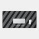 Enhance your desk with an unique, diagonal stripes, gray and black desk mat. The options to remove or add text, change the font and size, along with the background color are available.