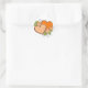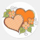Two hearts outlined with gold and filled with a pretty orange and white striped pattern and decorated with three matching blossoms.