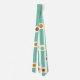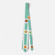 This tie has a 1970s retro design of blue stripes interrupted by circles in brown, orange and green.