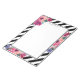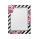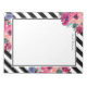 A personalised note pad with style and flair includes a black and white diagonally striped pattern with scattered bouquets of colourful watercolor florals. The vibrant flowers are in shades of pink, fuchsia and purple. Edit the sample name shown with your name or other desired text.