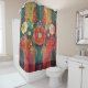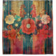 Bold artwork with red, green and gold stripes and flowers. The design combines shabby chic with Japanese wabisabi and would look great in a Maximalist decor.