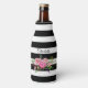 Wedding themed bottle cooler, done in a black and white striped pattern with watercolor graphics of a pretty pink peony bouquet. Personalise the black text for each member of your bridal party.