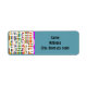 These return address labels have a mid-century modern design of rectangles on top of coloured stripes.