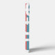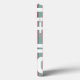 This phone case has a mid-century modern design of rectangles on top of colored stripes.