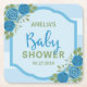 Stripes and Roses Blue Boy Baby Shower Square Paper Coaster