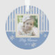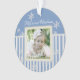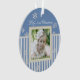 Blue stripes and snowflakes photo ornament. Add any photo and change text. Great for newlyweds, new baby, family photos and more. More shapes and colours available