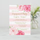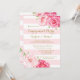 Custom engagement party invitations in light pastel pink blush and white stripes pattern with vintage watercolor flowers and gold colour text.
