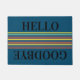 You can easily change the text and text colour, as well as the background colour of this personalised Hello Goodbye striped doormat.