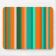 This mouse pad has a Bauhaus design of stripes in shades of orange and teal.