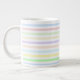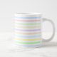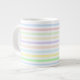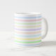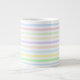 Lighten up with a pleasing thin stripes pastel colour combo on a jumbo ceramic mug.