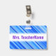 Stripes of Blue Pattern + Custom Teacher Name ID Badge