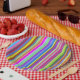 This design features an eyecatching pattern of stripes (or lines) of various colours.