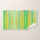 Stripes Orange, Lemon, Lime, Blue, Clay backed in soft lime. A great way to say summer is here in your bathroom. Subdued, yet fun shades for guest, kids baths and gifting.