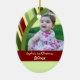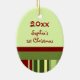 Baby's 1st christmas ornament customisable with your own baby photo in elegant red and green festive stripes pattern. A memorable gift for any new mum this holiday season.