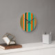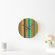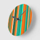 This clock has a Bauhaus design of stripes in shades of orange and teal.