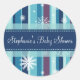 Baby shower favour tag sticker for christmas baby shower or winter baby shower in elegant and modern dark navy blue, aqua, purple and white festive snowflakes and stripes pattern. Customisable with your own text, contact us for a colour change. The perfect way to decorate your baby shower favours or as envelope enclosures.