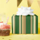 This photo gloss wrapping paper has green and gradient golden vertical stripes. This gift paper is an elegant item to wrap your gifts, as well as a nice present in itself to someone special.