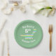Green and blue stripy cartoon dinosaur on cute Kid's customised Birthday party plates.
