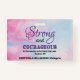 STRONG COURAGEOUS WOMAN Christian Conference Badge with inspirational message reading STRONG AND COURAGEOUS IS THE WOMAN WHO FEARS THE LORD which is based on Joshua 1:9. Mauve and black typography on cloudy pink and blue background. Ideal conference badge for Christian conferences - or perhaps as ID badges for your church groups, classes, motivational women's groups, etc. Matching gifts and resources available. Vertical version also available.