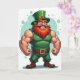 This design shows a muscular leprechaun centered in the frame, standing tall in an emerald outfit that catches the light 💚. He wears a high green top hat with a brown band and a gold buckle, plus a sleeveless vest and fitted trousers that show off his broad shoulders and arms. His orange-red beard and thick eyebrows frame a face set in a tight, determined grimace, with clenched teeth and narrowed eyes aimed straight ahead. The clenched fists and squared stance read like someone ready to step in for a friend, the kind of fierce loyalty that feels almost romantic in its intensity ☘️. Soft highlights glide across his skin and clothing, tracing every muscle and fold to add depth and shine. Any text sits near the top in light gold lettering, spaced wide so it doesn’t compete with the figure. Behind him, a teal, cloud-like haze with pale bubble shapes drifts across the background, keeping the focus on the green and fiery beard.