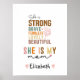 A modern girly and cute design of "She is strong" on a white background.