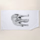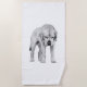 This towel carries a dramatic black-and-white rendering of a dog in firm stance. A bold, graphic piece for sun and water lovers who appreciate modern art.