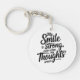 This powerful typographic design features the uplifting and relatable quote: "My smile is strong even when my thoughts aren't." The black, stylised, brush-script lettering pops against a light grey background, making a bold statement. It's an image that captures the emotional resilience of masking inner turmoil with outward positivity. Perfect for use as a motivational poster, a phone wallpaper, or for sharing on social media.